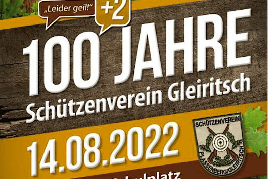Nachdem die Jubiläumsfeierlichkeiten der Gleiritscher Plassenbergschützen im Jahre 2020 im großen Stil geplant waren und das Fest bereits in den Startlöchern stand, schob Corona dem Ganzen einen Riegel vor. Die Verantwortlichen entschieden sich aufgrund der inzidenzbedingten Unwägbarkeiten für einen kleineren Rahmen der Festlichkeiten. Daher holten sie am 30. Juli 2022 das "Schirmfraubitten" bei MdB Marianne Schieder in Wernberg nach. MdB Marianne Schieder erhörte die Bitten der Schützen und fungierte als Schirmfrau.100 Jahre Schützenverein Plassenberg (13. und 14. August 2022)