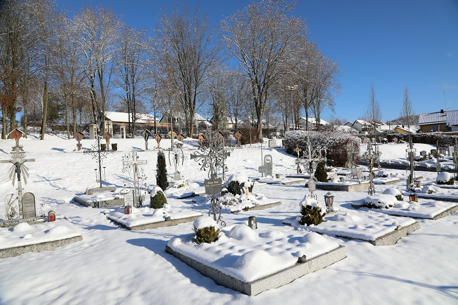 des Ortsgeistlichen einen neuen Friedhof am heutigen Pfarrweg, da ihm klar war, dass der alte Friedhof als Bauplatz für die Erweiterung des Kirchenanbaus benötigt wird. Das Leichenhaus am neu geplanten Friedhof wurde erstmals